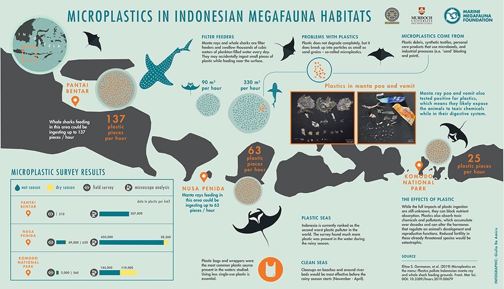 Eine groß angelegte Studie verschiedenster Orte im Bezug auf Mikroplastik in hoch frequentierten Gebieten für Filter Feeder wie Mantas oder Walhaie.